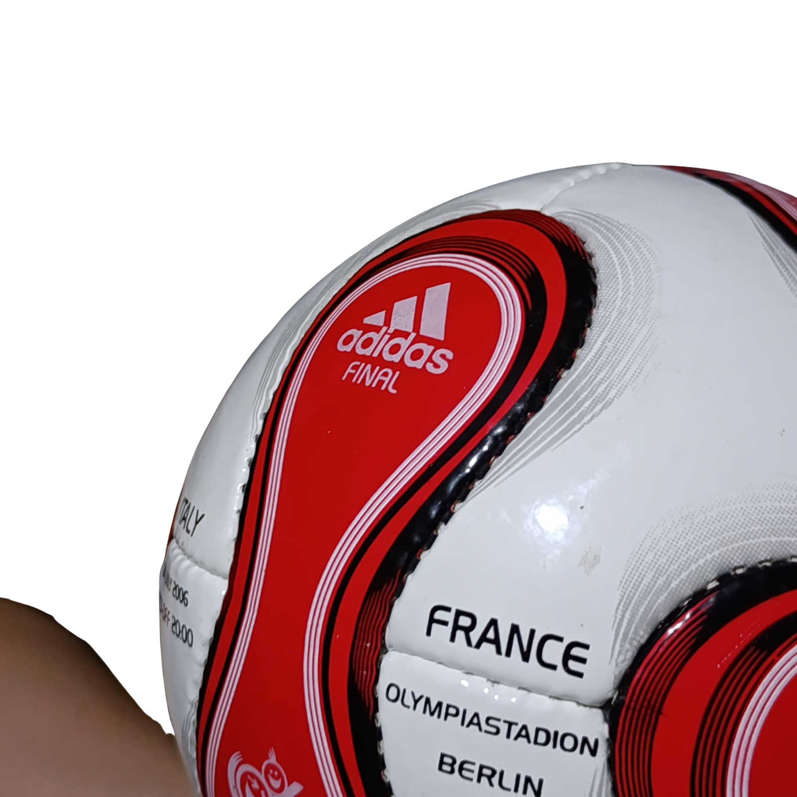 The Adidas Teamgeist Berlin was specially created for the 2006 FIFA World Cup Final between Italy and France in Berlin. This limited-edition match ball features a distinctive gold and white design symbolizing prestige, excellence, and the glory of the world’s biggest football stage.